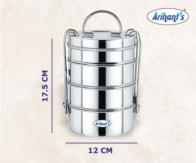 Lunch Box Material: Stainless Steel, Ideal Usage: Office, School, College, Number of Containers: 4 Colour Silver Material Stainless Steel Brand Arihant's Age Range (Description) Adult Special Feature Leak Resistant Capacity 1500 Milliliters Theme Silver Number of Pieces 4 Pattern Solid Product Care Instructions Dishwasher Safe