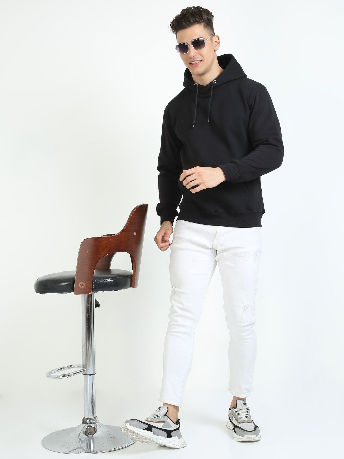 667661eb321785c31ef41f26Black HoodieBlack HoodieWrap yourself in cozy warmth with our hoodie, blending fashion-forward details and snug comfort effortlessly. Product Specification: Full Sleeves Kangaroo Pocket Hoodie with drawstring Ribbed Cuff and Waistline Size: Model is wearing M size Fabric: 100% Cotton (400 GSM) Wash Care: 30 Machine Wash, Do not bleach, Warm Iron, Do not Tumble Dry, Do not dry in direct sunlight.