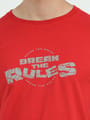 678243f4bfbcaf00240fdd8fCaslay Sustainable - Break The Rules - Red Crew Neck Printed T-ShirtIntroducing our Printed Crew Neck red eco t shirts crafted from virgin cotton for a luxuriously soft feel. Its regular fit ensures comfort and style, while the captivating pattern adds a touch of eco-conscious flair. Make a sustainable statement with every wear. Fabric: Feel of a Virgin Cotton Fit: Regular Fit Pattern: Printed Crew Neck Wash Care: Cold machine wash.