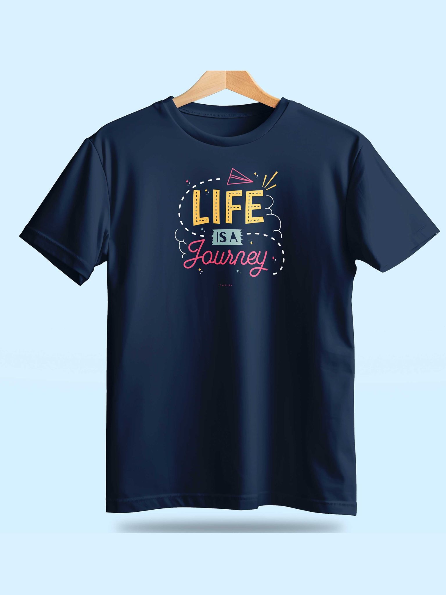Caslay Sustainable - Life is a Jounrney Blue Crew Neck Printed T-Shirt