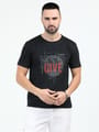 Introducing our Printed Crew Neck black sustainable cotton t shirts crafted from virgin cotton for a luxuriously soft feel. Its regular fit ensures comfort and style, while the captivating pattern adds a touch of eco-conscious flair. Make a sustainable statement with every wear. Fabric: Feel of a Virgin Cotton Fit: Regular Fit Pattern: Printed Crew Neck Wash Care: Cold machine wash.
