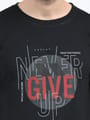 678246b5b2c0e0003e7c0f49Caslay Sustainable - Never Give Up - Black Crew Neck Printed T-ShirtIntroducing our Printed Crew Neck black sustainable cotton t shirts crafted from virgin cotton for a luxuriously soft feel. Its regular fit ensures comfort and style, while the captivating pattern adds a touch of eco-conscious flair. Make a sustainable statement with every wear. Fabric: Feel of a Virgin Cotton Fit: Regular Fit Pattern: Printed Crew Neck Wash Care: Cold machine wash.