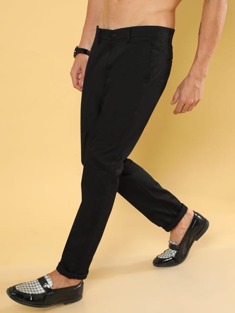 The model ( Waist-79cm, Hips-96cm, Height-183cm) is wearing a size 32 Fit : Slim Fit Length : Regular Waist Type : Mid Rise Pattern : Structured Dobby Fabric : 98% Cotton 2% Lycra Feather Light
