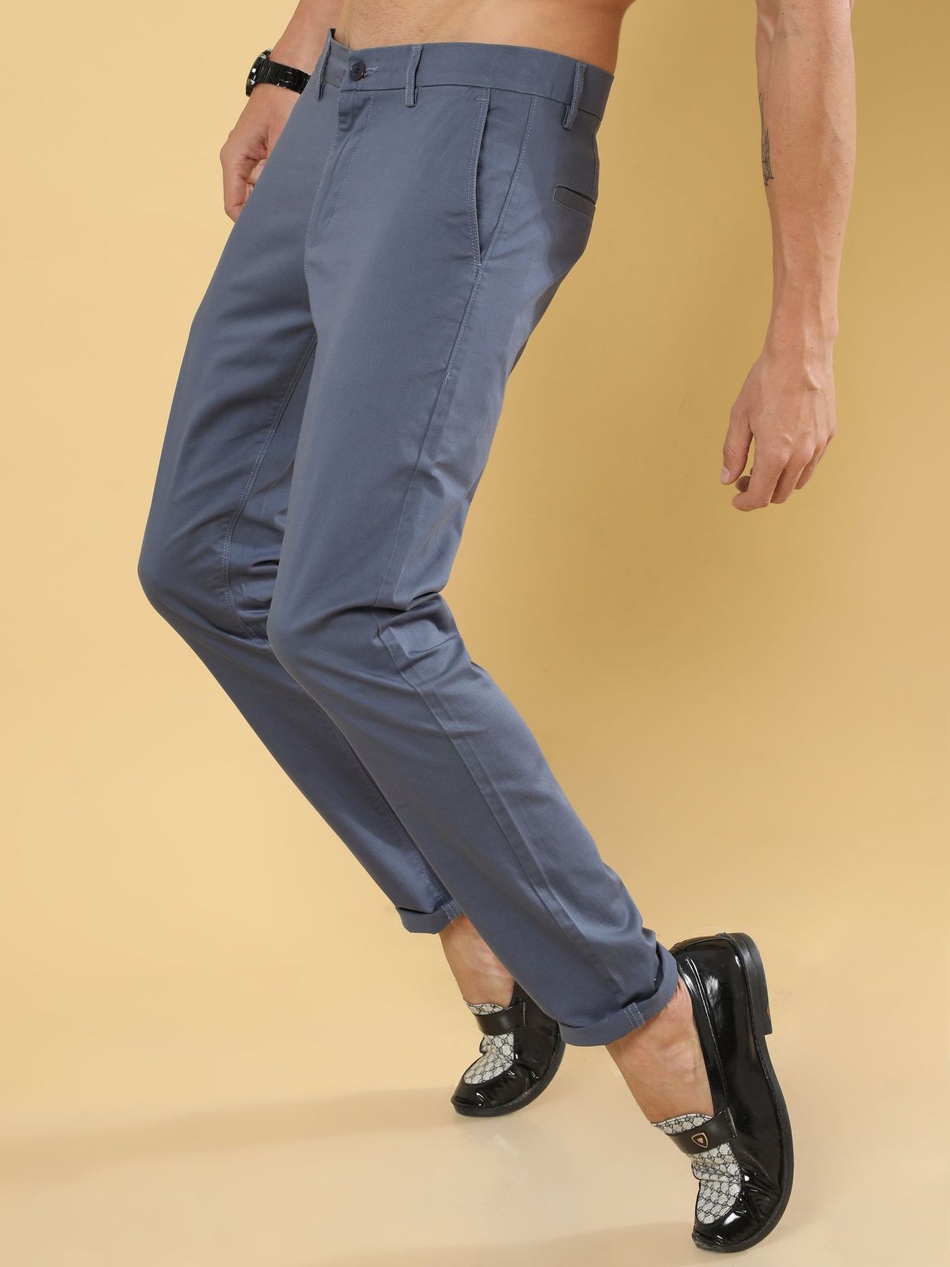 Cotton Dobby Mid Blue Lycra ChinoCotton Dobby Mid Blue Lycra Chino