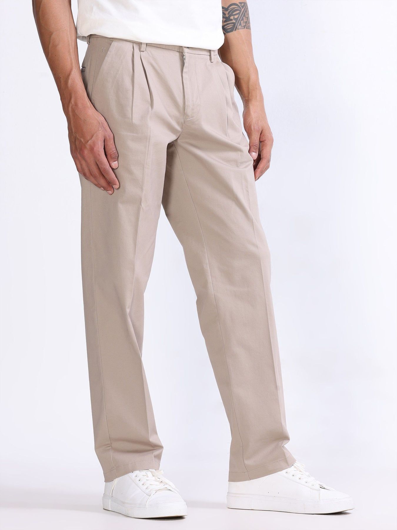 Relaxed fit double-pleated trousers in a comfortable fine quality stretch fabric front pockets, rear welt pockets, and zip fly. Fabric : 98% Cotton 2% Lycra Model Wearing : Size 32 Model Height : 6feet