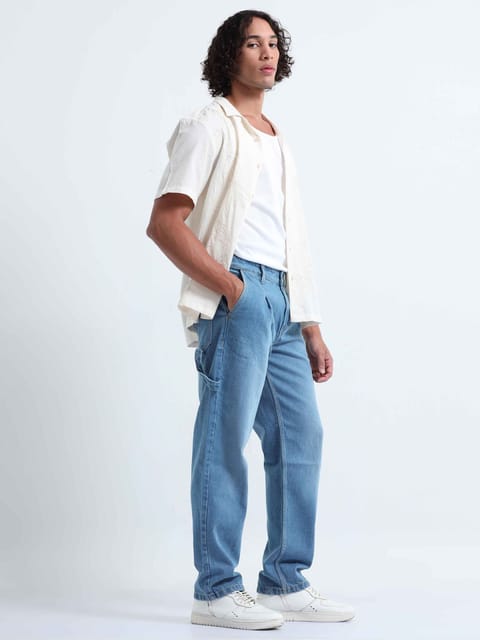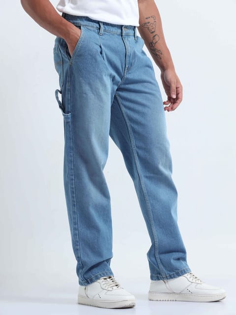 Relaxed Fit Pleated Denims In A Comfortable Cotton Denim Fabric With A Classic Waistband Featuring Front Pockets, Rear Patch Pockets, And Zip Fly. Fabric : 100% Cotton Model Wearing : Size 32 Model Height : 6feet