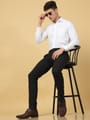 The model is wearing a size 32 Fit : Tailored Fit Length : Regular Length Waist Type : Mid Rise Pattern : Solid Fabric : 98% Cotton 2%Lycra Wash Care : Gentle Wash