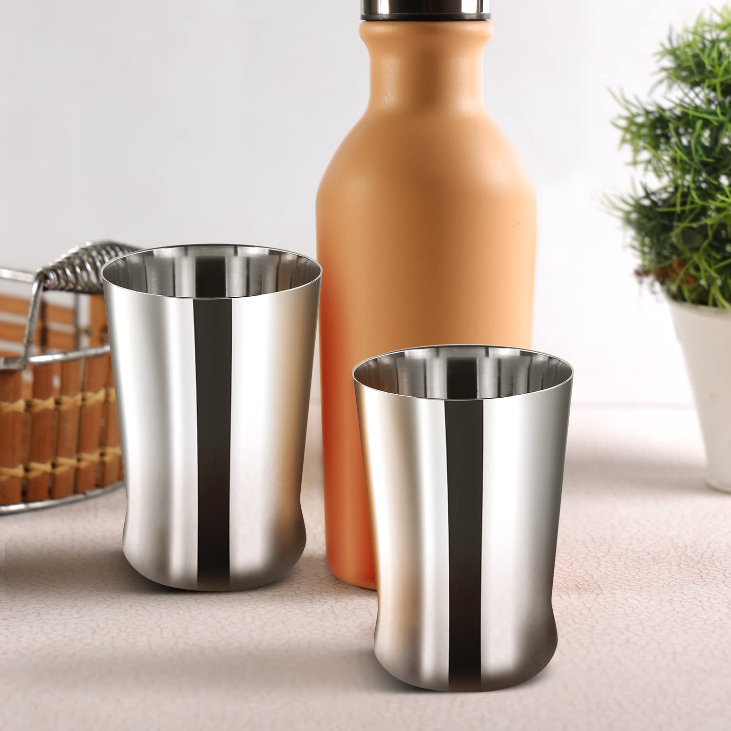 ENJOY FRESHER BEVERAGES - Crafted from 100% food-grade stainless steel, our glasses ensure your drinks stay toxin-free and refreshing. VERSATILE & DURABLE - Designed for home, office, or restaurants, these multipurpose glasses are perfect for water, juice, lassi, tea, and more. STURDY & DISHWASHER-FRIENDLY - Heavy gauge material guarantees durability, while the convenient design ensures easy cleaning. ADD TO CART now. ELEGANT & ERGONOMIC - With a wide neck and well-designed rim, our glasses offer both durability and comfortable sipping. Sip with style and ease. SAFE & BPA-FREE - Say goodbye to plastic toxins! Our stainless steel glasses are a healthy and eco-friendly choice for your well-being. MADE IN INDIA EXCELLENCE - Crafted with decades of kitchenware experience, our glasses combine durability, elegance, and local craftsmanship. LONG-LASTING QUALITY - Backed by a 24 Months Warranty, our glasses provide reliable performance and peace of mind for your purchase. PERFECT SIZE & SET - 300 ml capacity makes them ideal for various beverages. Available in sets of 6, you'll have enough for family and guests. ATTRACTIVE SILVER FINISH - Enhance your table setting with the sleek and modern silver color, adding a touch of elegance to any occasion. Brand Kraft- follow your imagination Colour Silver Special Feature Refrigerator Safe Style Modern Theme Adventure Recommended Uses For Product Home Included Components 6 pcs Stainless Steel Glass Specific Uses For Product Cold Drinks Shape Round Pattern Solid