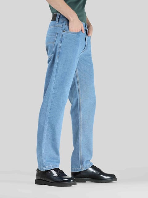 RELAXED fit DENIM in a comfortable cotton and polyester blend fabric with a classic waistband featuring front pockets, patched back pockets, and zip fly. Fabric : 80% Cotton 20% Polyester Model Wearing : Size 32 Model Height : 6feet