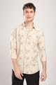 Men Linen Like Printed Shirt-BeigeMen Linen Like Printed Shirt-Beige