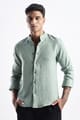 Men Milange Linen Look Shirts Mandarin Collar-Lt Olive