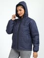 This windcheater features a single polyfill layer for lightweight insulation, providing warmth without bulk, making it an ideal choice for chilly days. Product Specification: Bomber Jacket With Hood Single Polyfill Fabric: Cire Coated Size: Model is wearing M size Wash Care: Dry Clean, No Machine Wash