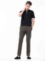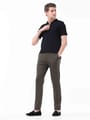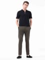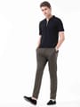 The model ( Waist-79cm, Hips-96cm, Height-183cm) is wearing a size 32 Fit : Comfort Fit Length : Regular Length Waist Type : Mid Rise Pattern :Solid Fabric : 25%Rayon 70%Nylon 5%Lycra Wash Care : Gentle Wash Special Features : Zip Fly