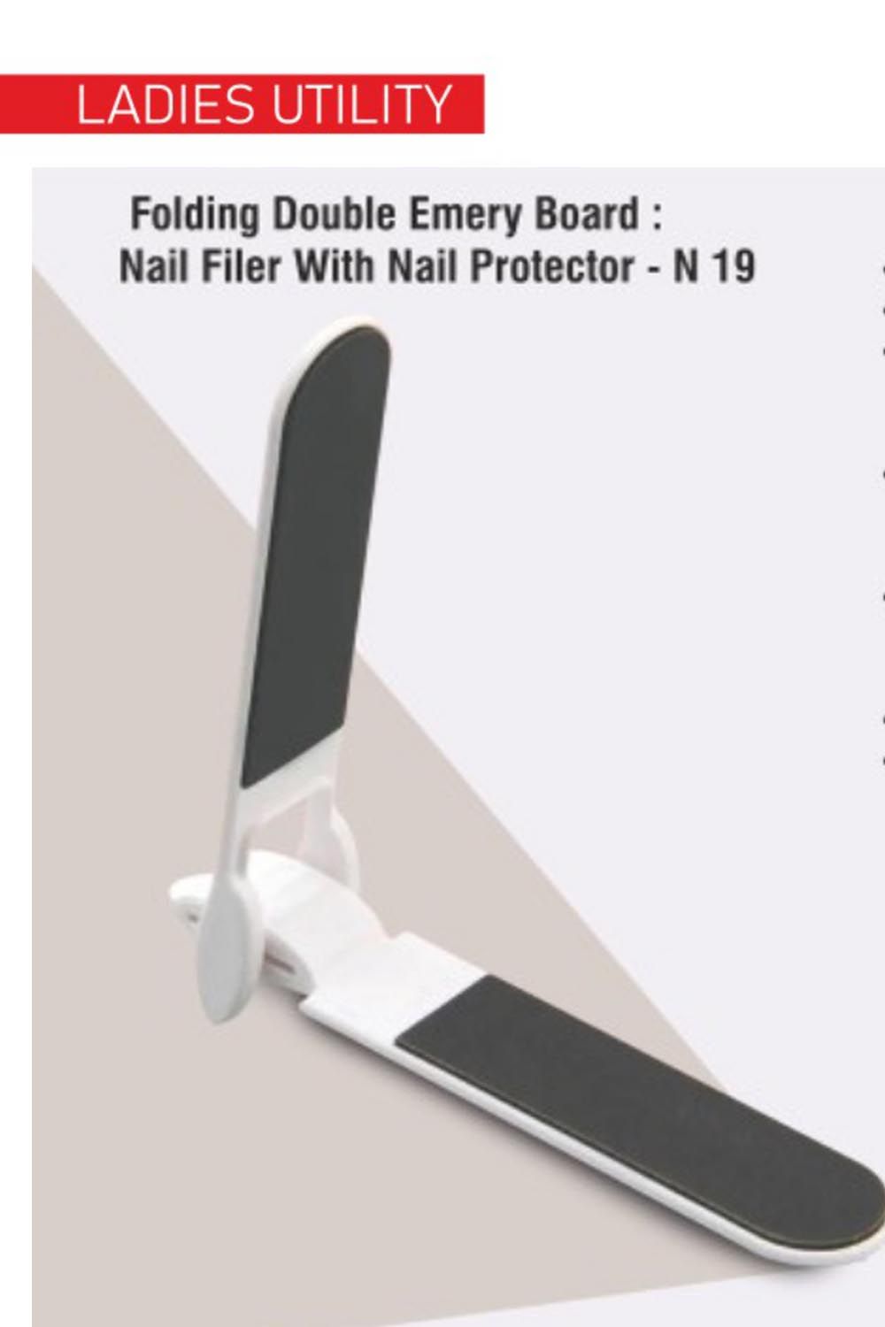 A must have for all the ladies - Double side emery board with Coarse and smooth finish - Made from Sandpaper imported from USA with top notch materials for extra durability. - Coarse side for shaping nails - Smooth side for giving a smooth finish to nails - Has a nail protector; to be used in place of your own nails while opening cans and other objects. - Comes with thick HDPE bag - Branding area on both sides as well as the bag