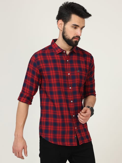 Elevate your ensemble with the Urbaro Red Full Sleeve Shirt. Skillfully tailored from high-quality 100% cotton fabric, this shirt offers exceptional comfort and durability. The bold red hue, paired with long sleeves, exudes confidence and a touch of sophistication. Make a lasting impression with this remarkable piece, designed to enhance your style and leave a lasting impression in any setting. SKU: 22USH0313 PRODUCT SPECIFICATION Full Sleeves Checks Pattern Mid cutaway collar Liberty cut FABRIC: 100% Cotton FIT: Smart Slim Fit SIZE: Model wearing 'M' Size Model Height: 6 feet WASH CARE: Cold machine wash, Dry in shade. For more details check out the wash care label in the garment. Actual color of the garment may vary slightly due to photographic lighting sources. Shirt Size Guide inches cm Size Chest Body Length Sleeve Length-Full Sleeve Length-Half Shoulder XS(36) 40 29.5 25 9.5 16.5 S(38) 42 30 25.25 9.75 17.25 M(40) 44 30.5 25.5 10 18 L(42) 46 31 25.75 10.25 18.75 XL(44) 48 31.5 26 10.5 19.5 Size Chest Body Length Sleeve Length-Full Sleeve Length-Half Shoulder XS(36) 101.6 74.9 63.5 24.1 41.9 S(38) 106.7 76.2 64.2 24.5 43.8 M(40) 111.8 77.5 64.7 25.4 45.7 L(42) 116.9 78.8 65.4 26.1 47.6 XL(44) 112.9 80.1 66.1 26.7 49.5 if your measurements fall between sizes, we suggest that you size up for a better fit