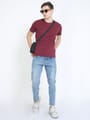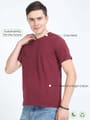 Elevate your eco-conscious fashion with our crew neck maroon t shirts sustainable. Made from organic materials and ethically produced, it's a wardrobe essential that combines style with sustainability, ensuring you look good and feel good. Our fabric comprises 60% pre-consumed cotton waste and 40% recycled PET bottle scrap, a testament to our commitment to environmental responsibility and contemporary style. Fabric: Feel of a Virgin Cotton Fit: Regular Pattern: Solid Size: Model is wearing a M size Model height: 6 Feet Wash care: Cold machine wash.