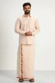 Uathayam Vaibhav Shirt and Dhoti Set is 100% Cotton. Dhoti was attractive and jari border colors. It is suitable for everyday wear. Wash only by hand or with a gentle machine. It is not recommended to wash this product with colors. Please do not use blue or bleach. Can be ironed on the borders with mild heating. Make your special day most memorable with our Uathayam Vaibhav Shirt and Dhoti Set.