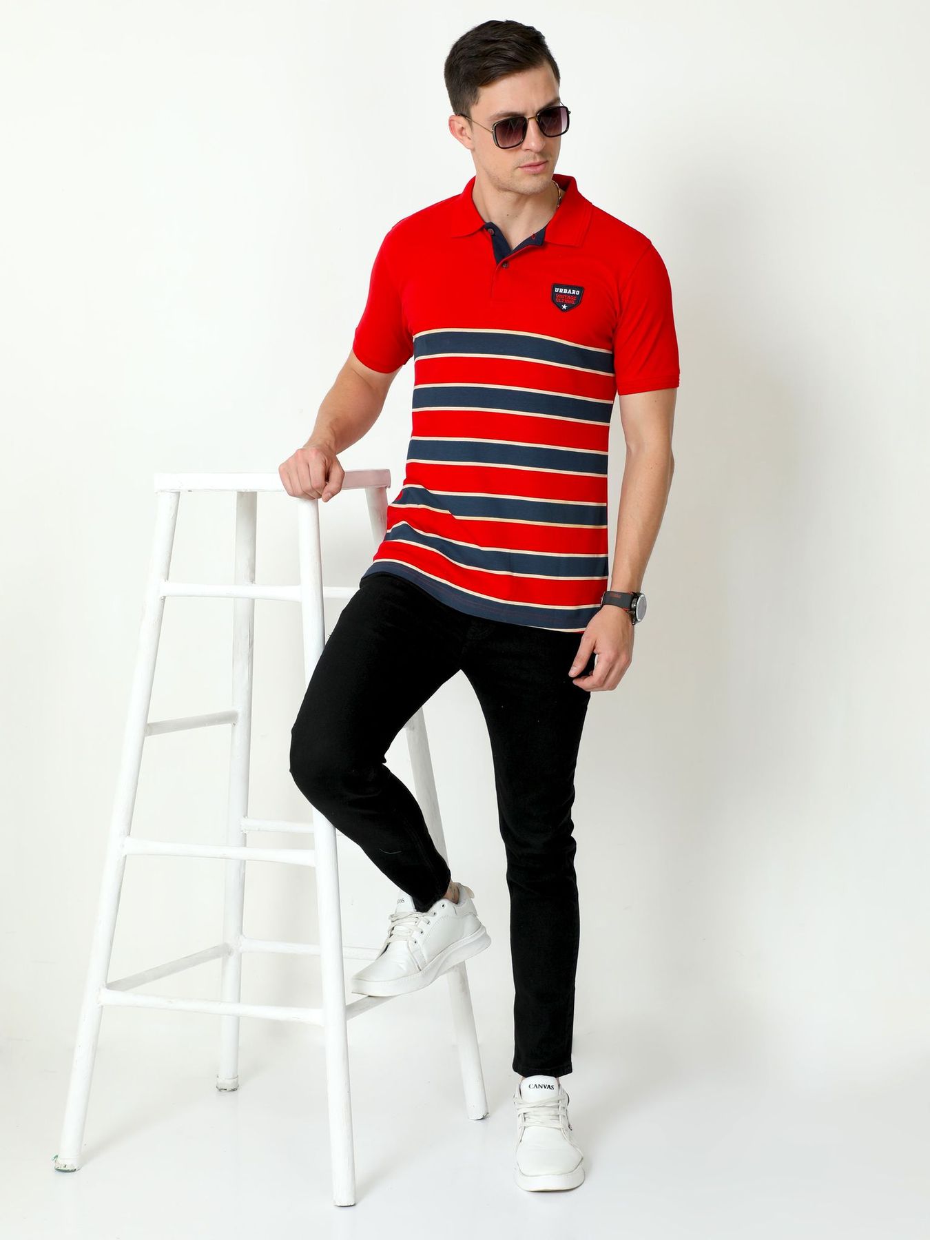 Urbaro fashion t-shirts are a popular and versatile clothing item that can be dressed up or down depending on the occasion. These t-shirts are made from high-quality materials, and they come in a wide range of styles, colors, and patterns to suit different tastes and preferences. sku: 22UTS0015 Product Specification Half Sleeves Collared Neck Straight Hem Comfort Stretch FABRIC: 95% Cotton, 5% Elastane FIT: Slim Fit SIZE: Model wearing 'M' Size Model Height: 6 feet WASH CARE: Cold machine wash, Dry in shade. For more details check out the wash care label in the garment. Actual color of the garment may vary slightly due to photographic lighting sources. if your measurements fall between sizes, we suggest that you size up for a better fit