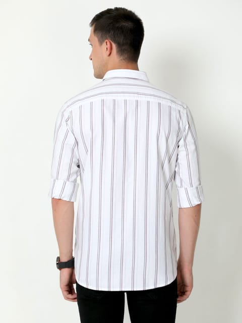 A casual stripe shirt is a type of garment that features a pattern of horizontal stripes in different colors or shades. These shirts are typically made from lightweight fabrics, such as cotton or linen, and are designed for casual, everyday wear. sku: 22USH0792 Product Specification Full Sleeves Stripes Pattern Mid cutaway collar Liberty cut FABRIC: 100% Cotton FIT: Smart Slim Fit SIZE: Model wearing 'M' Size Model Height: 6 feet WASH CARE: Cold machine wash, Dry in shade. For more details check out the wash care label in the garment. Actual color of the garment may vary slightly due to photographic lighting sources. if your measurements fall between sizes, we suggest that you size up for a better fit