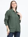 Women Drop pocket Popcorn oversized shirt-OliveWomen Drop pocket Popcorn oversized shirt-Olive