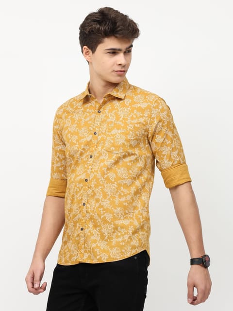 A printed shirt is a type of garment that is designed with patterns or images printed directly onto the fabric.The shirts can be subtle and understated or bold and eye-catching, depending on the wearer's preferences. sku: 22USH0340 Product Specification Full Sleeves Print Pattern Mid cutaway collar Liberty cut FABRIC: 100% Cotton FIT: Smart Slim Fit SIZE: Model wearing 'M' Size Model Height: 6 feet WASH CARE: Cold machine wash, Dry in shade. For more details check out the wash care label in the garment. Actual color of the garment may vary slightly due to photographic lighting sources. if your measurements fall between sizes, we suggest that you size up for a better fit
